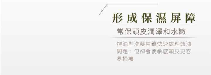 搭配三重控油因子-平衡頭皮油脂,讓頭皮不再因為乾燥出油而產生油垢異味