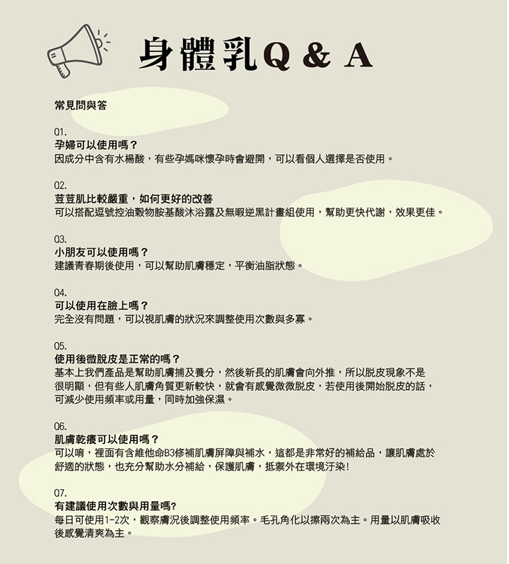 用法:清潔肌膚後,身體擦微乾後,取適量塗抹按摩於肌膚即可!