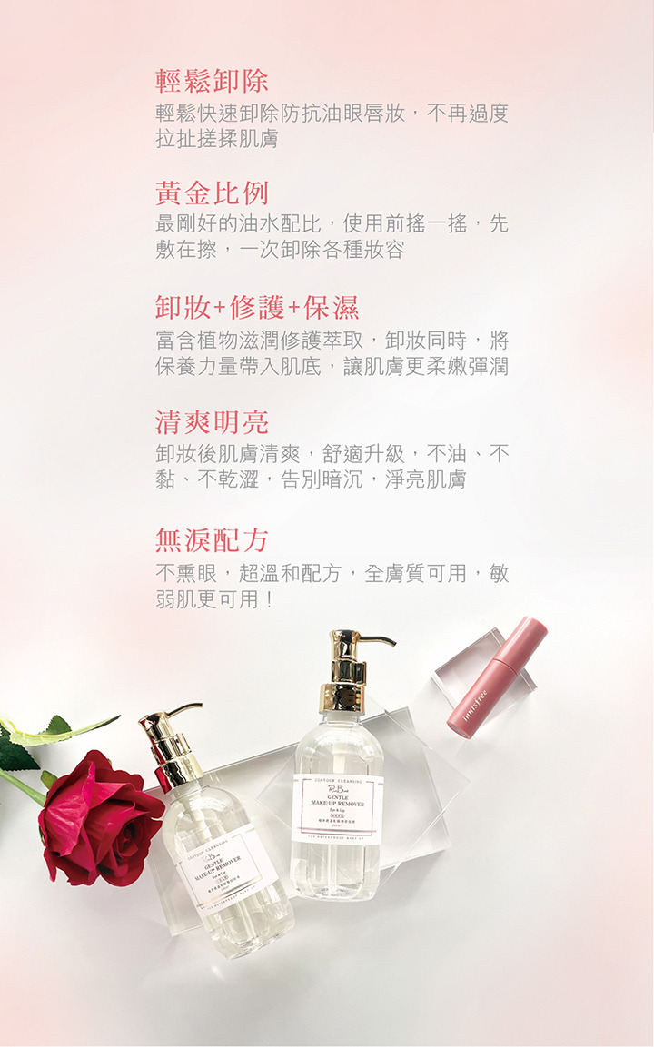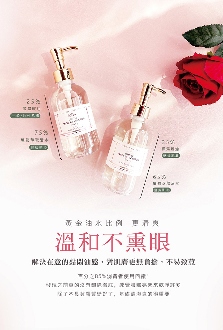 黃金油水配比,雙向卸除各式彩妝