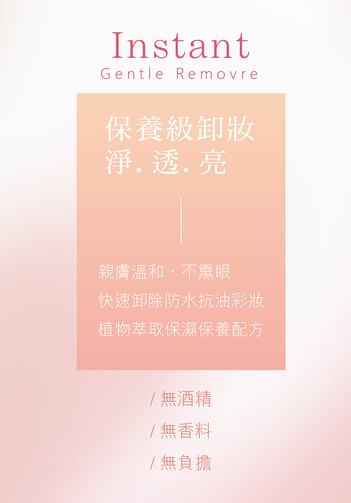 採用自然植萃、零酒精、無香精、無色素,調配油水黃金比例,賦予肌膚卸除彩妝後的舒適感!