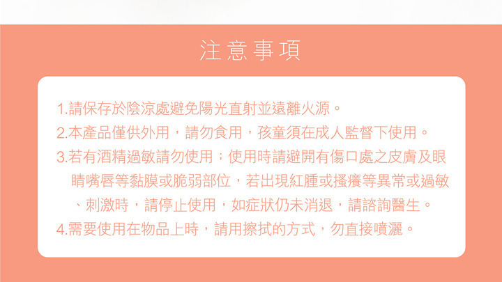 ‧請勿噴於臉部肌膚,避免靠近火源。