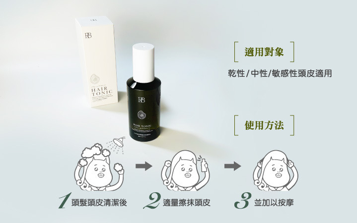 用法:使用前搖一搖,清潔後適量擦抹頭皮並按摩。一週最少4次,每日使用為佳。